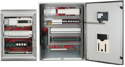 Шкафы управления «Энерджи Групп» применяются для управления системами вентиляции и центрального кондиционирования, которые приобретают не только для промышленных зданий и офисов, но и для дома. Большинство систем вентиляции снабжаются автоматическими системами управления. Шкаф управления имеет два режима управления – ручной и автоматический. Так же ввозможно дистанционное управление в системе диспетчеризации . Выбор режима работы осуществляется переключением режимов работы в соответствующее положение. В ручном режиме управление системой осуществляется с лицевой панели шкафа кнопками «Пуск», «Стоп» соответствующей системы, с отображением индикации состояния. В автоматическом режиме управление системой осуществляется по сигналам внешних датчиков и заданию, установленному оператором. Программа автоматического управления устанавливается на производстве, при необходимости алгоритм программы может быть изменен по техническому заданию заказчика. Корпус шкафа управления изготавливается из металла с порошковой окраской, так же по требованию Заказчика, изготавливаем шкафы из нержавеющей стали или пластика, для использования в агрессивных средах. Для уличного исполнения шкафы управления изготавливаются в антивандальном исполнении с двойной дверью и замком (все органы управления на внутренней панели шкафа).
